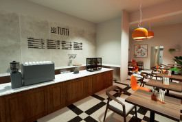 „PER TUTTI“ (italienisch für „Für Alle“) ist ein lebendiges Café und Bistro, gestaltet als einladender Raum, in dem zeitgenössisches Design auf zeitlosen Charme trifft.